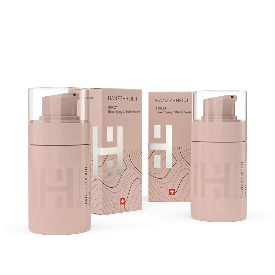 Pack con 2 unidades del BOOZT Cellular Serum HANZZ+HEIDII: tratamiento intensivo antiedad que revitaliza, reafirma e ilumina la piel. Su fórmula ultraconcentrada combina células madre de edelweiss y algas de nieve suizas con péptidos avanzados y ácido hialurónico multi-peso para: