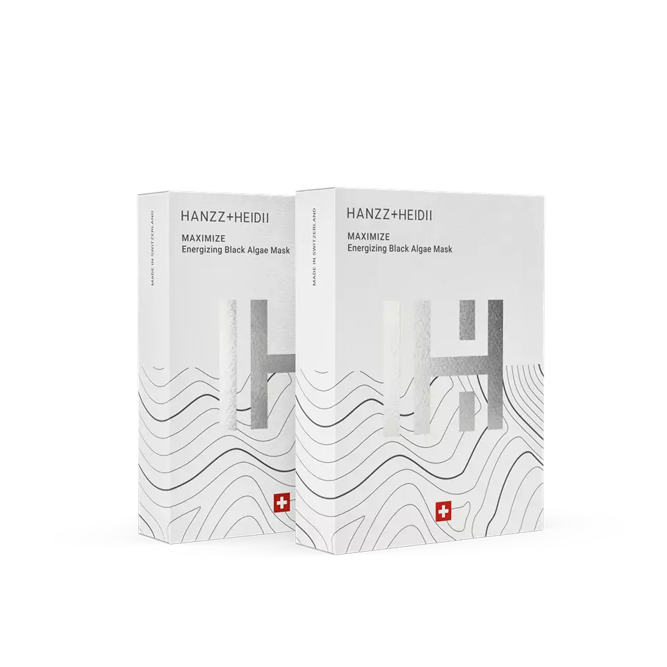 Pack con 2 mascarillas MAXIMIZE. Fórmula con carbón activado y algas suizas que purifica, exfolia y reafirma la piel al instante. Ideal para todo tipo de cutis.